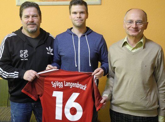 Künftiger Spielertrainer bei der SpVgg Langenbruck wird Patrick Spieler (Mitted), auf dem Foto flankiert von den Fußballabteilungsleitern der SpVgg Langenbruck Lorenz Weingartner (r.) und Wolfgang Sander. Foto: SpVgg Langenbruck