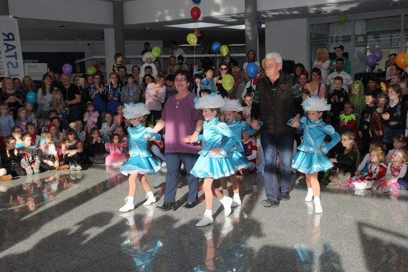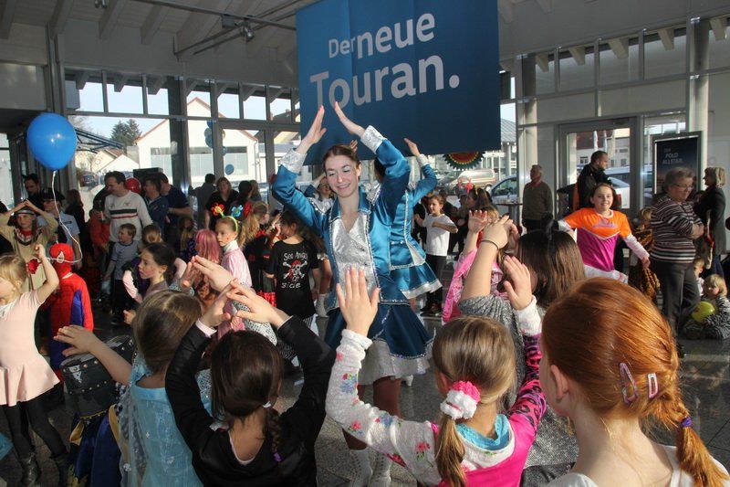 Doch Thomas Wallner hatte für seine Gäste auch noch ein ganz besonderes Highlight organisiert: die Narhalla aus Ilmmünster. „Natürlich freut es uns riesig heute hier auftreten zu dürfen“, erklärt Hofmarschall Alfred Kapp. Und ohne weitere Vorrede tanzten sich die Gardistinnen in die Herzen der Wolnzacher. Bei den spektakulären Hebefiguren, die bis unters Dach des Autohauses reichten, kam so mancher aus dem Staunen nicht mehr raus. Die Konsequenz: Das Publikum klatschte Minuten lang Beifall und forderte Prinzessin Bettina I. und Prinz Stephan III. völlig zu Recht eine Zugabe. Und so tanzten die Ilmmünsterer am Ende nicht nur vor, sondern auch mit den Kleinen. Ein rundum gelungener Nachmittag.
