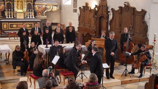 Der zweite Teil war dann eher der Fastenzeit gewidmet. Vom Leben und Sterben, Angst, Ohnmacht und doch der großen Hoffnung auf Erlösung wird berichtet. Nikolai Ardey, Bass; Cvetomir Velkov, Oboe; „MEMO“ – Projektchor und Kammerorchester St. Johannes unter Leitung von Max Penger schufen eine beeindruckende Stimmung, die sich mit dem Choral: „Komm, o Tod, du Schlafes Bruder“, Bann brach. Sichtlich beeindruckt kam der Applaus, nach anfänglichem Zögern, dann doch gewaltig. (J. S. Bach: Kantate „Ich will den Kreuzstab gerne tragen”, BWV 56 für Bass-Solo, 2 Oboen, Taille, Chor, Streicher und b. c.)