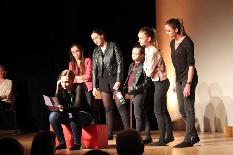Im aktuellen Stück der Siebt- bis Zehntklässler werden Schillers Räuber in die Jetztzeit versetzt. Die Truppe um Regisseurin Tanja Schymkowitz stellte bei der gestrigen Premiere die „Wohlstandsratten“ vor – übrigens wie immer auch noch ein letztes Mal heute Abend! Wer ein kurzweiliges und unterhaltsames Theaterstück mit phantastischen jungen Talenten erleben möchte, möge sich heute noch einmal um 19 Uhr in der HGW-Aula einfinden. Der Eintritt ist wie immer frei, Spenden dürfen gern in Schillers Perücke wandern.