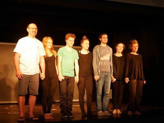 Die fünf jungen Laiendarsteller, die mit unglaublichem Einfühlungsvermögen diese aufregende Geschichte umsetzten, sind kaum älter als die Figuren des Stückes. Umso anerkennenswerter ist ihre Leistung auf der Bühne. Man hört das Stück förmlich wachsen, spürt die Verzweiflung und Begeisterung, wird mit hineingerissen in die knisternde Erotik einer jungen Liebe. Egoismus und falsch verstandene Hilferufe drängen die beiden Hauptdarsteller, Lars und Oliver, zu einem finalen Entscheidungskampf, der hautnah ausgetragen wird. Nähe und Entfernung, Verlangen und Ablehnung, die homosexuelle Beziehung funktioniert nicht anders als die heterosexuelle. Neugierige Blicke auf küssende junge Männer, verbieten sich genauso, wie die auf die weiblichen Reize, bei einer Poolszene in Badekleidung.