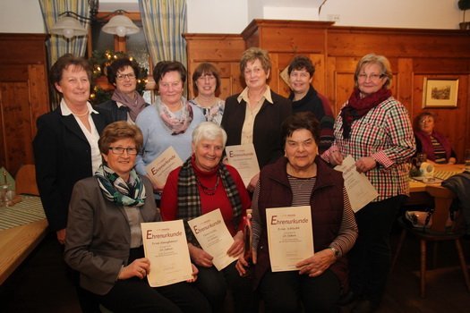 Jutta Winter konnte gemeinsam mit Sabine Widmann und Kathi Gmelch wieder zahlreiche Frauen für ihre langjährige Mitgliedschaft ehren.