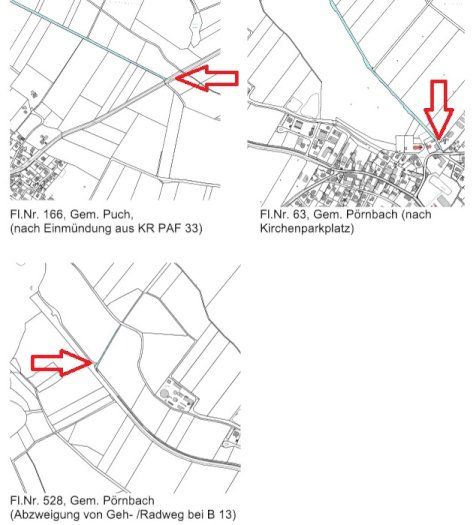Die Karten zeigen die geplanten Standorte der Schilder. Quelle: Gemeinde Pörnbach