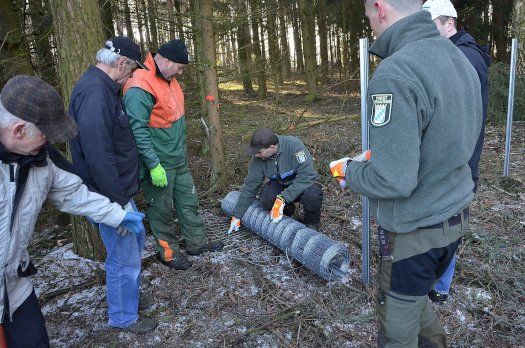 Die Förster sprechen von Kosten beim Selbstaufbau von etwa vier Euro pro laufendem Meter. Man müsse auch noch darauf achten, dass der dann etwa 150 Zentimeter hohe Zaun beim Aufbau gut gespannt werde, so der Hinweis der Fachmänner. Was ansonsten noch alles beim Zaunaufbau zu beachten ist, erfuhren die Teilnehmer, als sie selbst beim Einzäunen recht aktiv Hand anlegten.