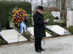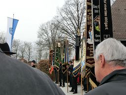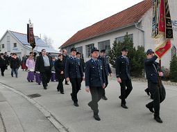 Angeführt von einer Blasmusikkapelle folgten zahlreiche Gemeinderäte, Bürger, Feuerwehr, Vereine und Reservisten, teilweise in alten Uniformen. Begleitet von Böllerschüssen, mit abgesenkten Fahnen und Salutgesten wurde ein Kranz vor den Tafeln mit den Namen jedes einzelnen Gefallenen niedergelegt. Der Vorsitzende des Kriegervereins, Max Ziegltrum, hielt eine nachdenkliche Ansprache, in der er auch Bezug nahm auf die momentane kritische, politische Situation, speziell die Gefahren und Kriege im Nahen Osten.