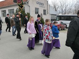 Pater Dariusz segnete und weihte das Kriegerdenkmal, die Musik spielte getragene Weisen. Anschließend ging es geschlossen zurück ins Dorf zu einem geselligen Beisammensein.