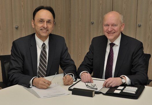 Der Vorstandsvorsitzende Richard L. Riedmaier (l.) und der Vorstand Franz Mirbeth legten heute die Bilanz der Volksbank Raiffeisenbank Bayern Mitte für das vergangenen Jahr vor. Foto: Volksbank Raiffeisenbank Bayern Mitte