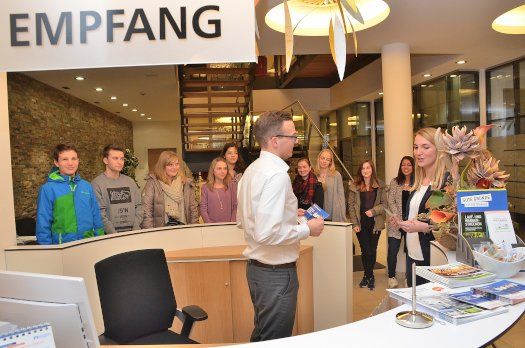 In zwei Gruppen - Erwachsene und Jugendliche - geteilt, stellte Ausbildungsleiter Christian Frank zusammen mit seinem Team Birgit Reis, Claudia Heinzinger, beide sind als Ausbilder tätig, dazu Julia Hammel, Lena Kellermann, Lukas Edmüller, die alle seit Februar frisch ausgelernt haben und jetzt als Kundenberater ihre Laufbahn starten, die vielfältigen Perspektiven in der Bankenwelt vor.