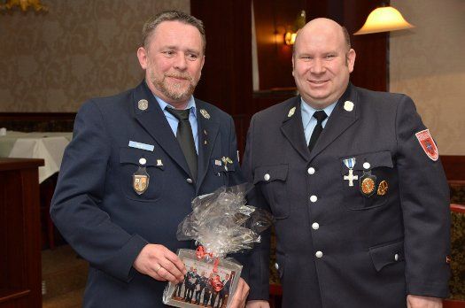 Ludwig Bengl (l.) wurde als langjähriger Feuerwehr-Vereinsvorstand, und zwar ist er das seit 1996, von Kommandant Konrad Mauermayr im Nachgang zur Ehrung des Landkreises im vergangenen Jahr ausgezeichnet.