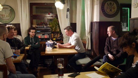 Dichter-Casting die NEUNTE, Jens Rohrer gewinnt mit „Einfluss am Abfluss“, einer Hommage an die Leberkässemmel, den Schlittschuh den einst Goethe in der Ilm verlor. Er hatte den Preis bereits 2012 gewonnen und freut sich, ihn auf seinen angestammten Platz in seiner Dichterstube zurückstellen zu können.