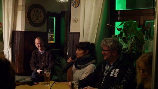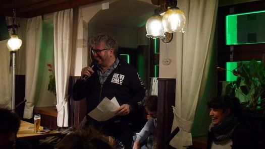 Gerhard Trautmannsberger hatte diesmal den Mundarttext über einen „Heimatschützer“ dabei, fast zu umfangreich und anstrengend bei einer Lesung. „Fast schon Profis“ wie er, nützen den Schlittschuh gerne, auch erfolgreich, doch die Jury wechselt und die Mitstreiter sind im Vorfeld nicht einschätzbar. Also gerne wieder, so wie eben der glorreiche Gewinner Jens Rohrer mit seiner Kurzgeschichte "Einfluss am Abfluss" (www.jens-rohrer.org).