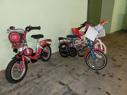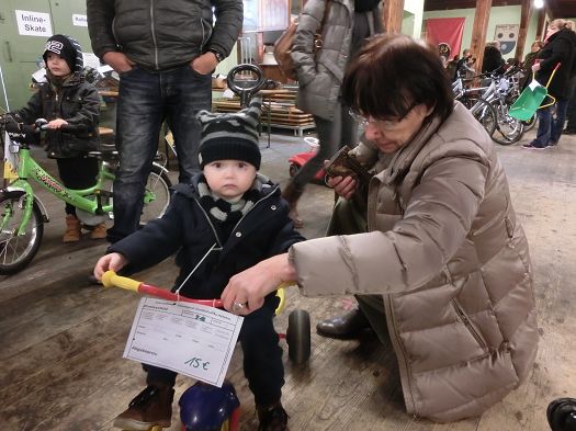 Ca 150 Räder warteten heuer sorgsam aufgereiht auf die Käufer, zahlreiche Kleinteile wie Fahrradhelme, Kindersitze, Inliner, Einräder, Tretroller, Bobbycars und sogar ein Tretcar standen zum Verkauf. Von ganz billig, ca. 20€ für ein Rad, bis ziemlich teuer, 390€ für ein allerdings ursprünglich 2000€ teures Rad, war alles dabei. Sogar originalverpackte niegelnagelneue Räder wurden angeboten, Mountainbikes für Jugendliche waren wieder besonders gefragt, aber auch winzige Räder für die Kleinsten.