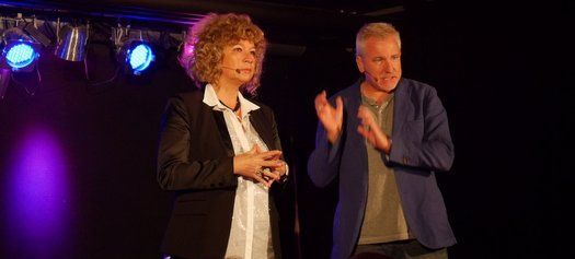 „Wir müssen reden!“ der Titel des ersten Matuschik-Rohrer Programms, ist eine Aufforderung zum verbalen Kreistanz auf der Bühne. Rein vom Beruf her verdienen die beiden beim Hörfunk, die Älteren erinnern sich das ist ohne „youtube“, ihren kargen Lebensunterhalt durch eben „Reden“. Jeder für sich alleine, zu unterschiedlichen Sendezeiten und Themen, neutralisiert in der Sprecherkabine, ohne nennenswerten Kontakt zum Publikum.