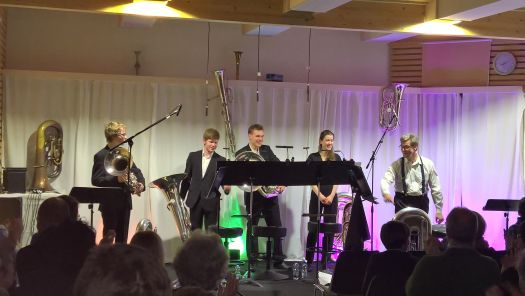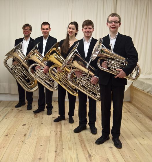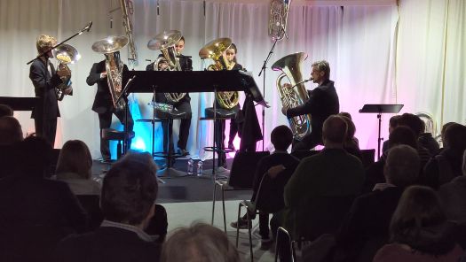 Jeder der das Wort Kammermusik hört, weiß gleich welche Musikrichtung gespielt und welche Instrumente eingesetzt werden: in der Regel klassische Musik und Streichinstrumente oder Klaviere. Doch Kammermusik mit Tuba? Geht denn das? Und ob, sagten sich Claus-Peter Wittmann und vier seiner Musikschüler und er begeisterte am Samstagabend in seinem privaten Konzertraum an der Hofmarkstraße die große Gästeschar.