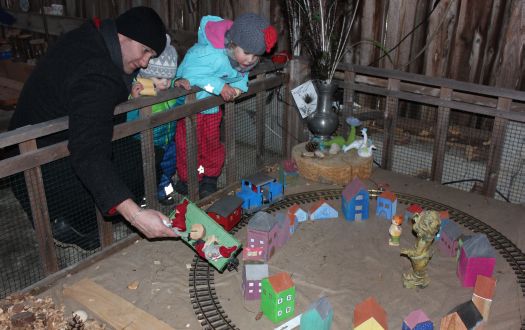 Danach machte sich die ganze Schar auf den Weg in die Osterhasenwerkstatt. Auf dem Weg dorthin wurde aber noch beim Hühnerstall vorbeigeschaut, um sich bei den Hennen für die Eier zu bedanken.