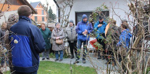 Nach dem Ausflug mit seinen praktischen Demonstrationen im Garten eines Vereinsmitglieds trafen sich die Interessierten bei Kaffee und Kuchen im Gartenstüberl, wo der Referent seine Erfahrungen zum Rosenschnitt auch noch in einem Vortrag zusammenfasste sowie für Fragen zur Verfügung stand.