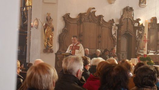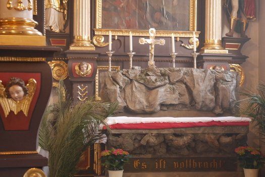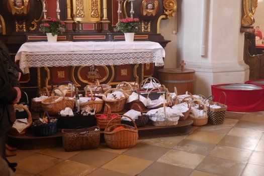 Die Ministranten hatten jedoch Osterwache am Feuer gehalten und mit einem prächtigen Einzug das Licht in das weite Gotteshaus getragen. Die Körbe für die Speisensegnung stapelten sich bis hinter die Seitenaltäre, jeder wollte einen kleinen Segen mit nach Hause nehmen. Pfarrer Peter Wagner hielt eine beeindruckende Predigt, bei der er mit seinen Schäfchen nicht unbedingt zimperlich umging. Die Frauen bekamen viel Lob und die apostolische Kirche nicht unbedingt die beste Karte. Die Letzten werden die Ersten sein und das Wunder der Auferstehung erleben. Man könnte natürlich auch das moderne Hasenfest mit Schokoladenhohlkörpern feiern, so Wagner.