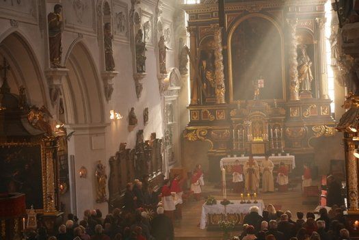 Mit zaghaftem Sonnenschein begrüßte der Ostersonntag die Gläubigen, die in Scharen zum Hochamt in die Stadtpfarrkirche St. Johannes Baptist in Pfaffenhofen, eilten. Die Zeitumstellung in der Osternacht, hatte sicher seinen Teil bei den Nachzüglern bewirkt.