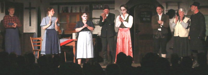 Stellvertretend für alle, die zum Gelingen der Aufführung beigetragen haben, seien hier die Schauspieler in ihren Rollen genannt, die dafür Sorge tragen, dass der Schwank trotz dieser makabren Hintergrundthematik so humorvoll beim Publikum ankommt: die beiden skurilen Totengräber Schaufe und Schippe (Peter Reichhold und Helmut Brandstetter); die "geist"reichen Untoten Erika Kistler und Helga Brandstetter sowohl im richtigen Leben des ersten Akts als auch als ruhelose Untote in den Geistermasken des verbleibenden Stücks; Lukas Grillmeyer, Michaela Landsberger - das junge Paar, das auf keinem Volkstheater fehlen darf, sowie last but not least Franz Landsberger als Dorfschuster und Sarah Griebler als etwas spinnerte Dorfjungfer.