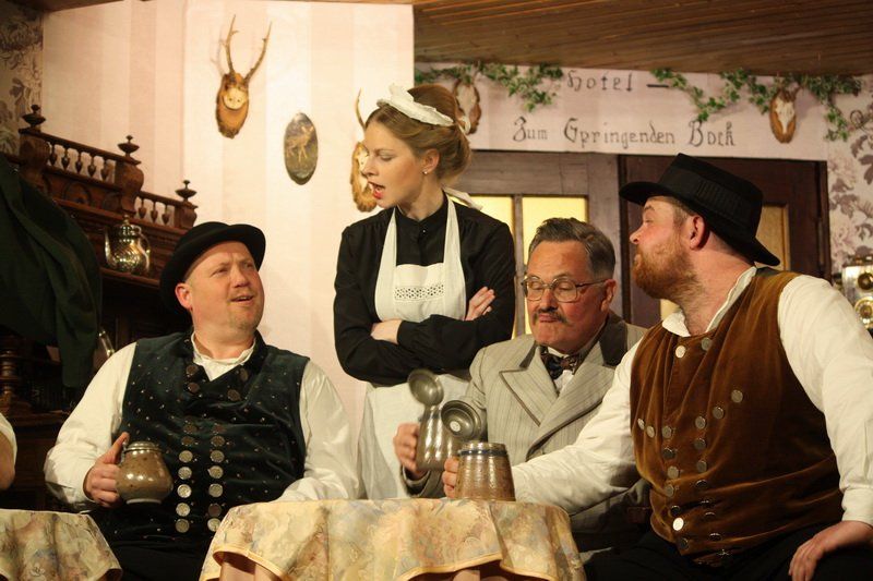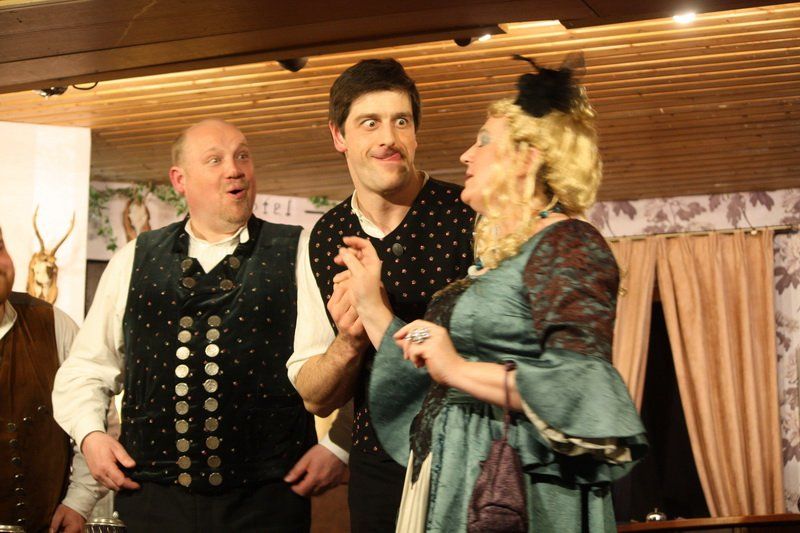 Bereits in den ersten Szenen mit Axel Meier als Parade-Preiß Jens-Holger Hasselblad und dem kreativen Französisch des Hoteliers Johann ist das Publikum gleich dabei, wird schallend gelacht, gibt es reichlich Zwischenapplaus – vor allem als sich Herr Hasselblad ins Zeug legt, um der reichen Gästin Flickedanz (Brigitte Pauly) den Hof zu machen. Die Pointen sitzen das ganze Stück hindurch so perfekt, dass einzelne Wörter oder ein besonders gelungenes Gschau (oft von Realcharmeur Wolfgang Breitner) regelmäßig Beifall bekommen – und zu Recht. Regisseur Christian Forsthofer hat wieder geniale Arbeit geleistet. Das Stück braucht kein nervöses Herumgerenne um fehlende Handlung auszugleichen, wie es bei einer der beiden wichtigsten bayrischen Bühnen mittlerweile Usus ist. In Niederlauterbach stimmt jede Geste, jeder Blick, jeder Satz, und die Kostüme und Bühne tun ihr übriges an Professionalität dazu.