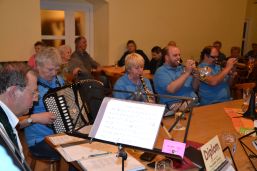 Aber auch"De Zamgwürfelten" brachten Schwung in den Abend, wenn die Blasmusik mit drei Tuben, Akkordeon, Trompeten, Klarinette und Kontrabass loglegte. Aber auch als Duo mit Tuba und Akkordeon, leicht begleitet mit Gitarre vom Moderator Martin Lengfelder, verzauberte die Stimmung im Saal. Die Fuchsbergmusi mit Gabi Hamberger an der Gitarre war dann mehr für den ruhigeren Part des Abends zuständig, aber sie spielten keine Hintergrundmusik bei der die Gäste anfingen zu ratschen, sondern sie erregten die volle Aufmerksamkeit der Gäste, die jeden musikalischen Beitrag mit kräftigem Applaus honorierten.