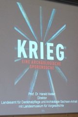 In Halle hat sich erstklassige historische Forschung aus Ausgrabungen entwickelt. Der wichtigste Repräsentant, Prof. Dr. Harald Meller, Direktor des Landesamts für Denkmalpflege und Archäologie mit Landesmuseum von Sachsen-Anhalt hielt am Dienstagabend im Kelten-Römer-Museum einen hochinteressanten Vortrag über die Entwicklung des Kriegs in der Menschheitsgeschichte. Dazu wird in Halle gerade eine faszinierende Ausstellung gezeigt (bis Anfang Mai). Auch ein umfassender Bildband ist dazu erschienen.
