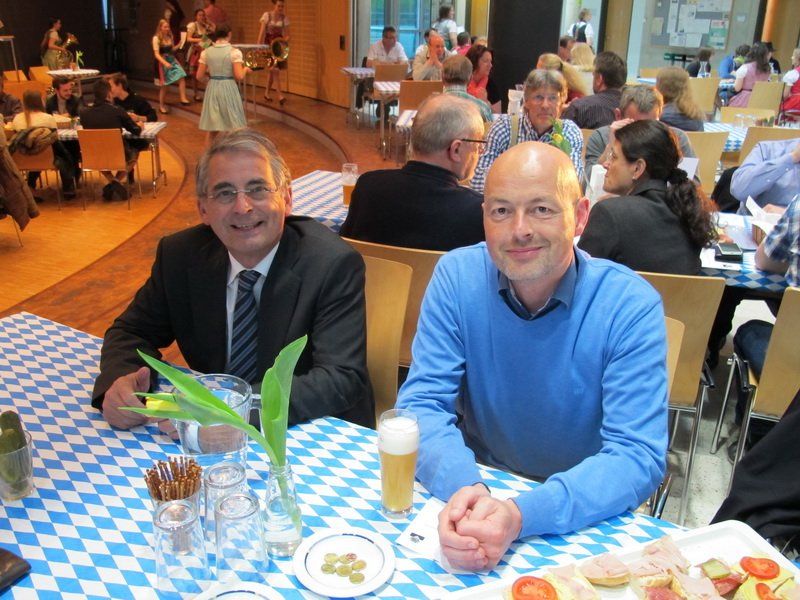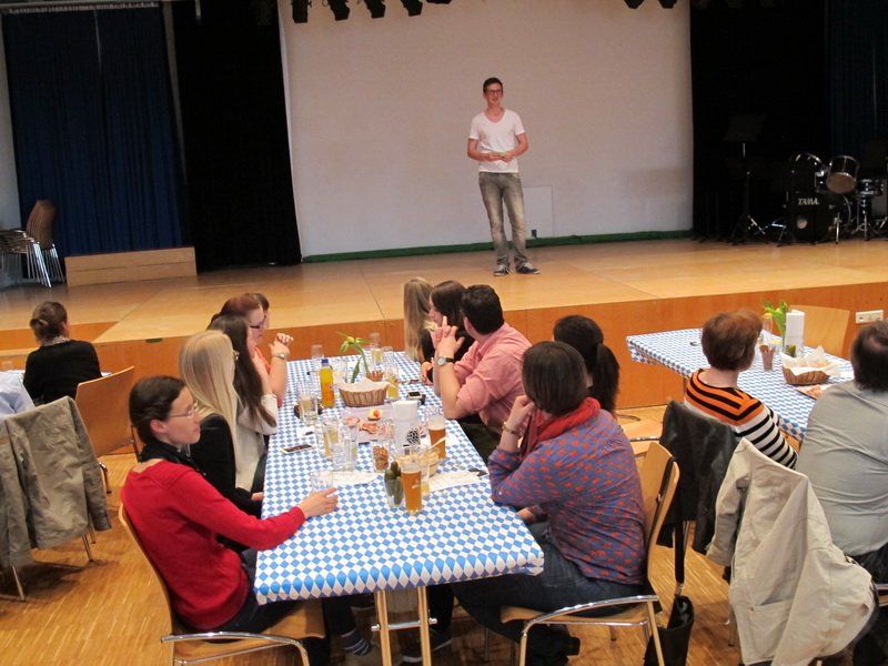 HGW-Bräu? Durch die Zusammenarbeit mit der Urban Chestnut Brauerei (ehemals Bürgerbräu) ist dies nicht nötig. Doch die Fässer wurden gerade so hereingerollt. 50 Liter pro Biertyp mussten es mindestens sein. Und fanden in der Aula, beim Fest zum Reinheitsgebot, regen Absatz. Zur Benotung lagen überall Zettel aus. Der Abend war bestens organisiert und ausgeschmückt, die Einlagen wurden nahezu perfekt vorgetragen. Nach dem Brauerfolg nur selbstverständlich! Es soll 10 verschiedene Obatzte gegeben haben!?