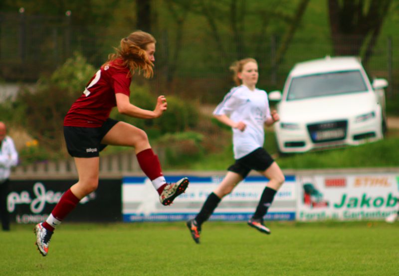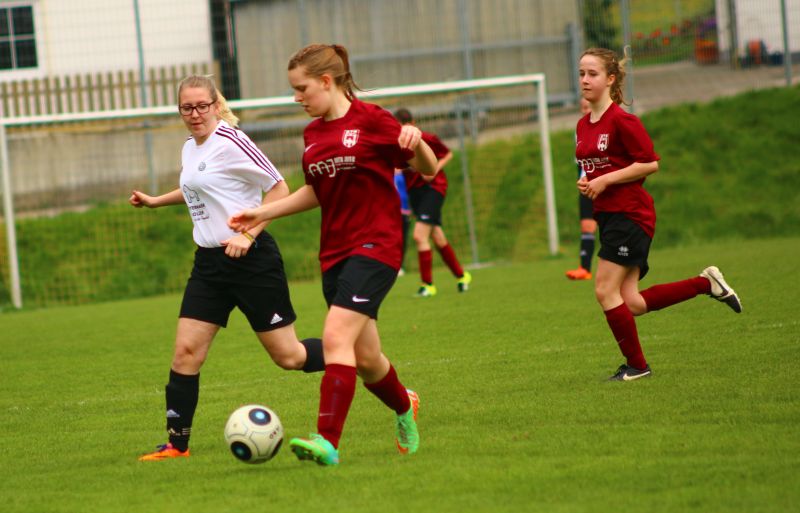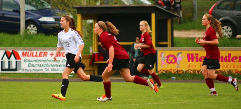 Die zweite Halbzeit sah das gleiche Bild: Spielgeschehen in der Hälfte der Gastmannschaft, deren wiederum konsequentes Stören aus einer kompakten Abwehr heraus und Nadelstiche setzen bei schnellen Kontern. Die 69. Minute war es letztendlich, in der die kurz zuvor eingewechselte Pia Hupfauer den vielumjubelten Siegtreffer erzielen konnte. Alles Anrennen der Landkreis-Mädchen half nichts mehr; Pech kam auch noch hinzu, als nämlich 3 Minuten vor Schluss noch ein Freistoß von der Strafraumgrenze durch Lea Lugscheider an die Latte gesetzt wurde.