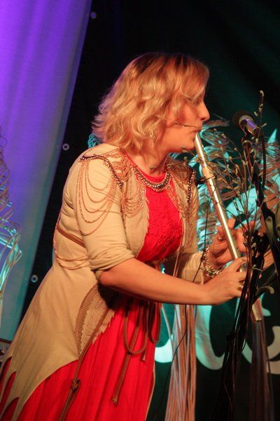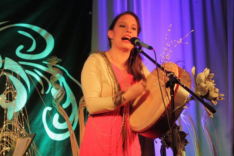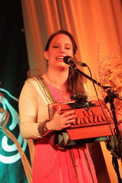 Musikalisch wechseln sie von schönen Melodien über spannende Sprech-Sing-instrumental-Kombos zu ansteckenden Rhythmen. „Man darf bei aller Mystik nicht den Spaß daran vergessen“, sagt Stefanía. So haben sie auch allerhand Instrumente dabei, unter anderem die Shrutibox. „Alle fragen immer nach diesem einen Instrument, dabei kann das gar nix!“ – „Doch!“ – „Jaah, es kann einen Ton.“ – „Njääääääh“. Die Zuhörer sind genauso bezaubert von der Selbstironie und authentischen Herzlichkeit, wie ihr Veranstalter Thomas Waldmann, der ihnen extra einen besonders aufwändigen Technikaufbau gemacht hat. Die drei können nämlich noch mehr als spaßige oder traumvolle Lieder. Vor der Pause legten sie eine deutsche Ballade vor, die es an Intensität in sich hatte. Wie bestellt läuteten gleichzeitig die Wolnzacher Kirchenglocken, die zufällig genau den Grundton des Stückes trafen. Gänsehaut!