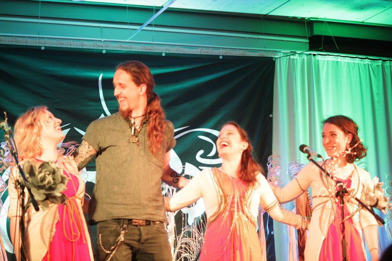 Phantastisch, herzlich und humorig präsentierten sich die Musikerinnen des Trio Adas mit Gitarrist Jakob am Samstag im Hopfenmuseum. Die festivalerprobte „Elvenfolk“-Band, wie sie ihre Musikrichtung nennen, spielte und erzählte ihre Lieder und Geschichten ohne Distanz zum Publikum, mit viel Sympathiewert und wunderschönen Melodien und Rhythmen.