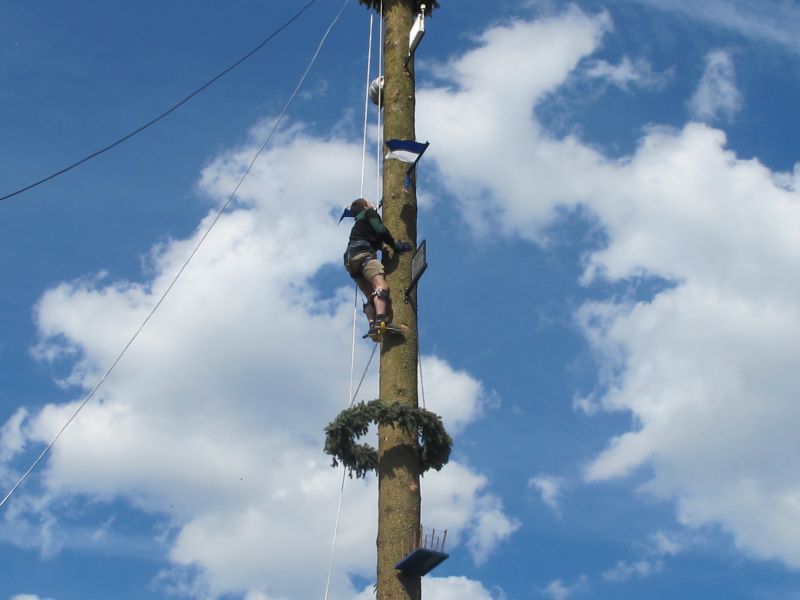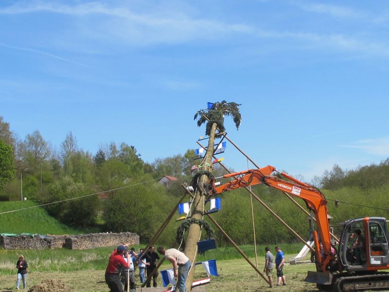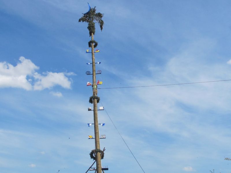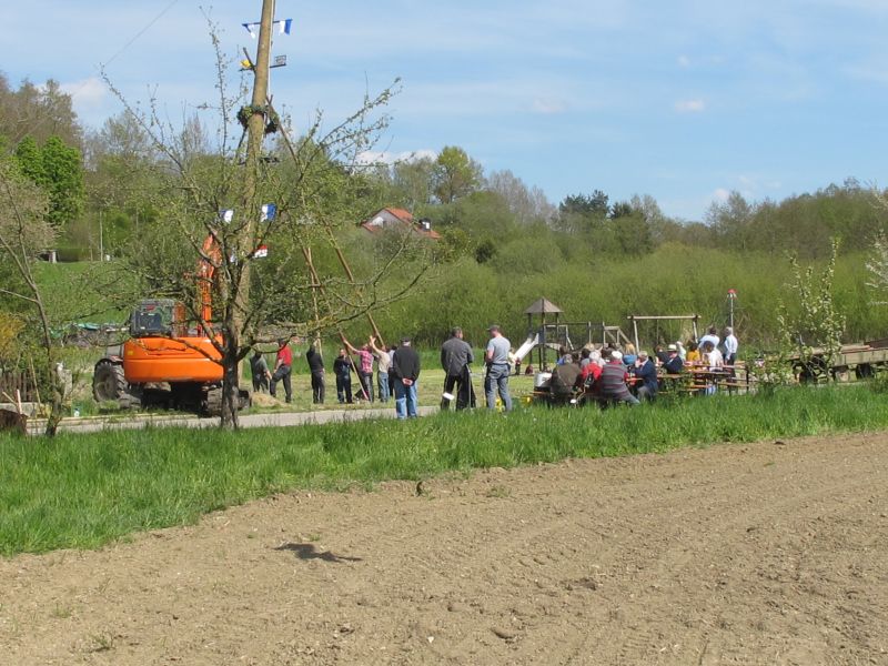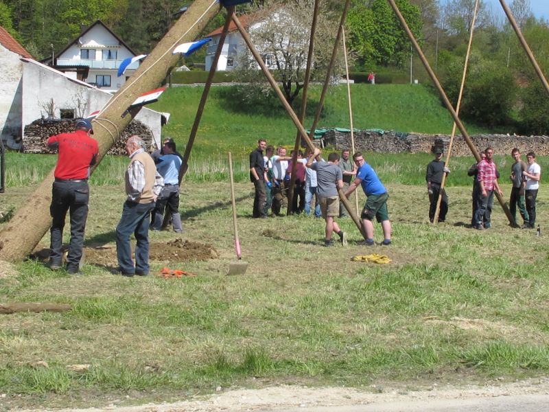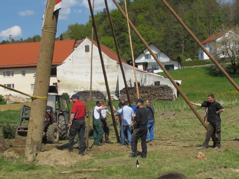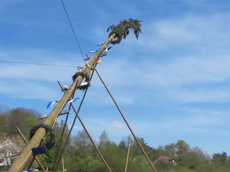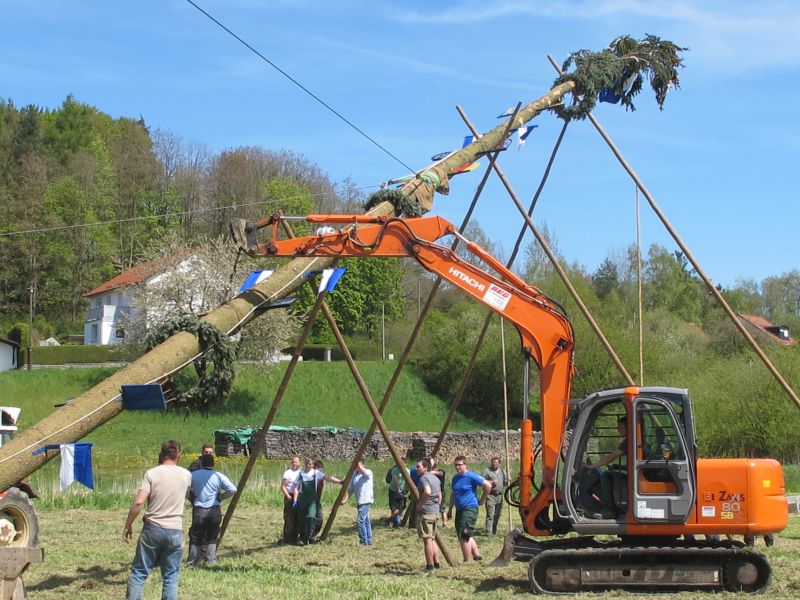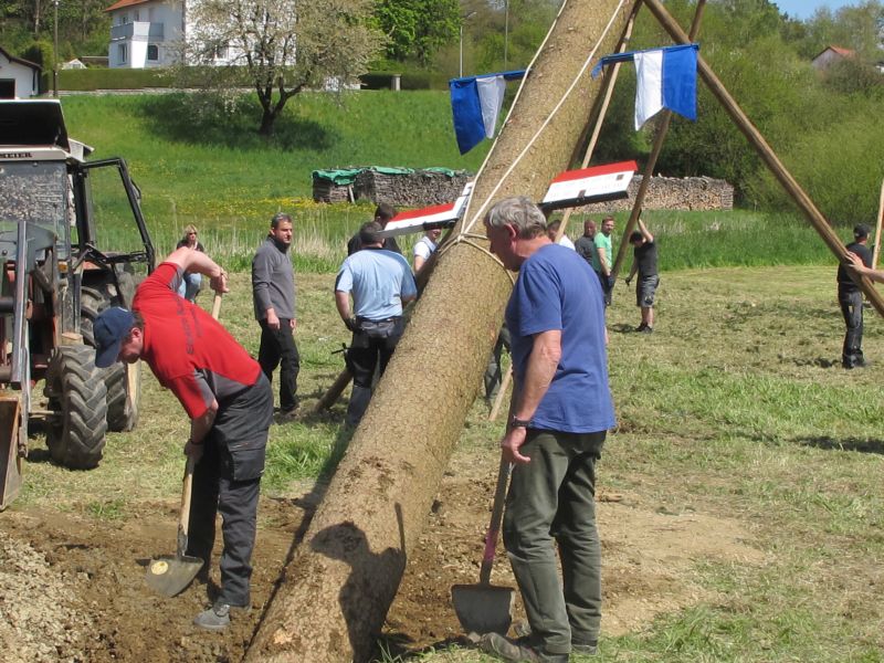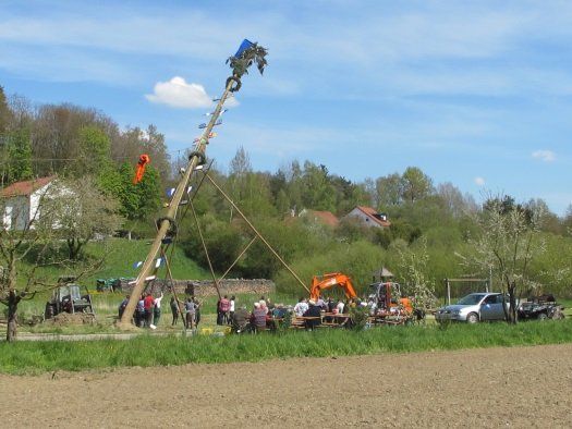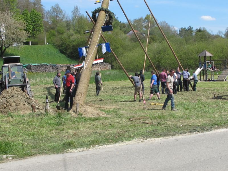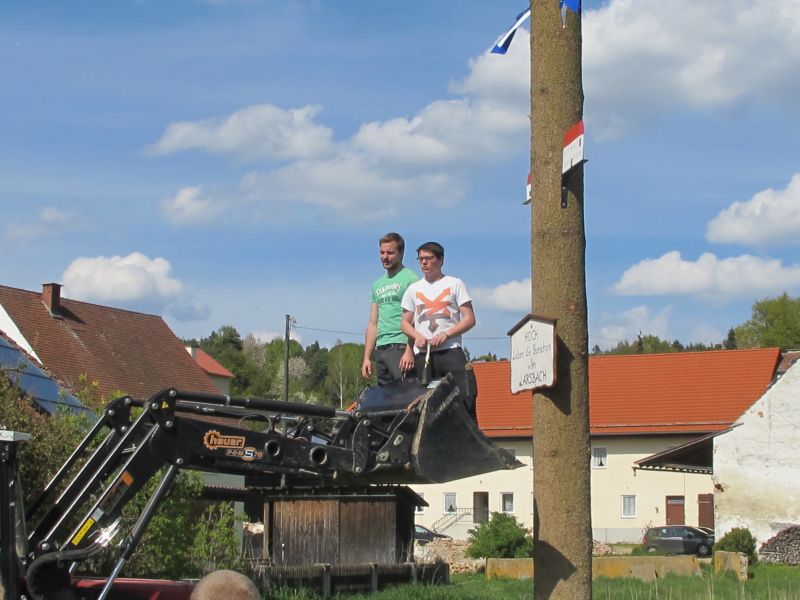 Wohl einer der ersten Maibäume in diesem Jahr ist der vom Burschenverein in Larsbach. Sie haben beschlossen ihren Maibaum schon einen Tag vor dem 1.Mai aufzustellen Ein stattlicher Baum mit 2 ½ Kubikmeter und 33 Metern Länge schmückt jetzt für ein Jahr die Dorfmitte.