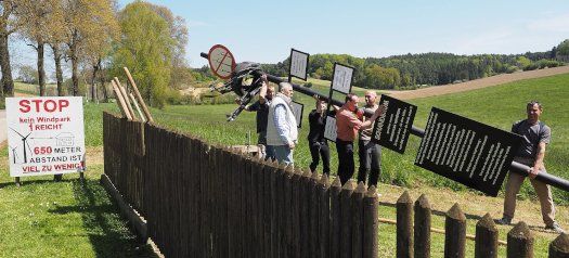 „Gewidmet unseren KOMMUNALEN VERTRETERN im Namen derer, die dann leiden, wenn DIE sich dann die Hände reiben!“, ist auf einer Tafeln zu lesen. Auf einer weiteren steht: „Ihr lieben Leut, nun gebet acht – ein schwarzer Baum zur Schand der Regierung hier erbracht. Nun lest was sie uns antun wolln: Windparks im Wald entstehen solln. Kein Rücksicht wird genommen hier, für unsere Heimat, Mensch und Tier!!! Habt nun gebracht in viele Orte: Zwietracht, Hass und böse Worte!!! Das höchste Gut wollt ihr uns nehmen, und dafür solltet ihr euch schämen!!! Und über unsre Köpf hinweg – entschieden wird nur zu eurem Zweck!!! Sind denn die obigen Gesetze genau genommen nur Geschwätze? Wär sehr traurig für die Welt, wenn das geschieht, was hier erzählt.“