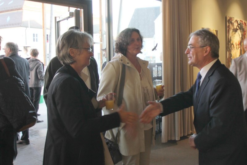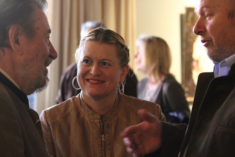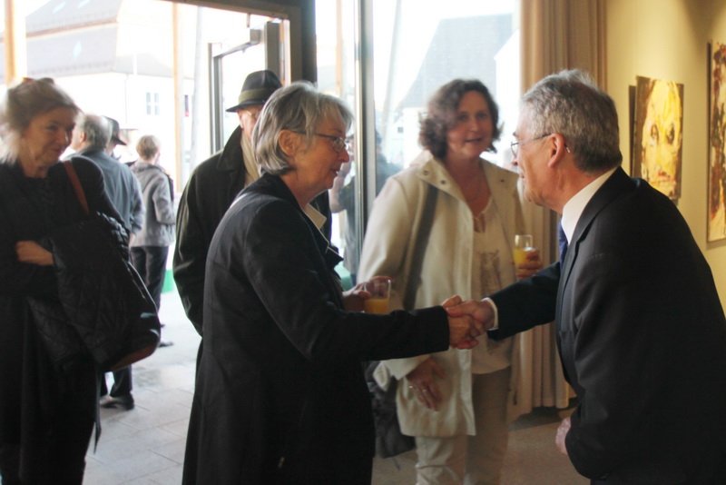 Ganz aktuell sind die meisten Bilder, erzählt Eduard Kastner in seinen Einführungsworten, in denen er die Künstlerin voll des Lobes seinen Gästen präsentiert. Ihre Bilder sind mittlerweile so gefragt, dass sie bestimmte Portraitmotive mittlerweile zum dritten, vierten Mal neu gemalt hat. Ihr geht es darum, in einer Welt, in der die Fotographie an Wert verliert, weil jeder mittlerweile durch gute Handykameras zum Hobbyfotografen mutiert, den Menschen wieder zu zeigen, dass man Bilder mit Ruhe betrachten kann – über Malerei sinniert man. Für sie nimmt man sich noch Zeit.