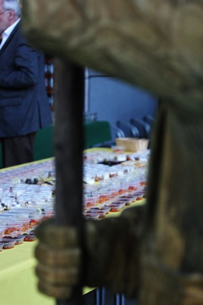 Zeit nehmen sich auch die Gäste, die in der lauen Nacht lange verweilen und sich mit der Künstlerin oder einander unterhalten, oder zum eigensinnigen Jazz-Country-Südstaaten-Sound von A Baker’s Dozen den ein oder anderen Hüftschwung raus holen. Wer sich die Werke Janina Roiders anschauen möchte, sollte dies unbedingt live im Hopfenmuseum tun. Sie wirken vor allem durch die Nähe des Betrachters, durch das Verweilen vor ihnen.