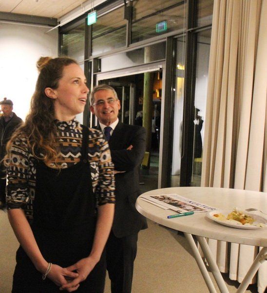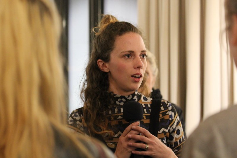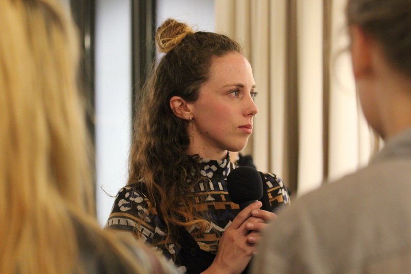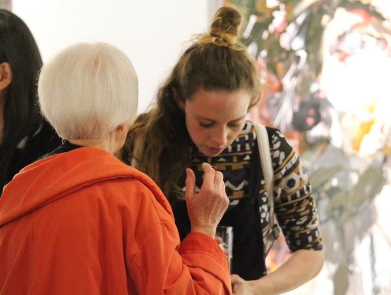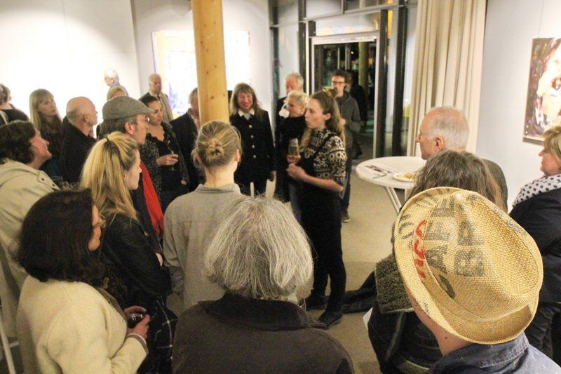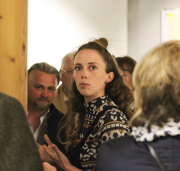 Hauptsächlich gelassen sah man die Künstlerin an dem Abend ihre Werke erklären, sich selbst auf der Bühne präsentieren. Pragmatisch veranlagt wirkt sie und mit solidem Selbstwertgefühl – sie muss nicht gefallen, sie macht ihr eigenes Ding. Aus dem Stand gibt sie am Schluss der Vernissage eine kleine Führung zu ihren Werken, obwohl das erst zur Medissage geplant war.