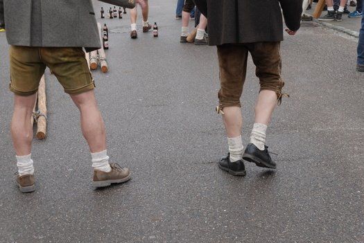 Gute zwei Stunden dauert das Aufstangeln des Baumes, bis um Punkt 16:00 Uhr, das Kommando „Baum steht“ durch Niederscheyern hallt. Die Wetterlage oder Kondition der Beteiligten spielt keine Rolle, es ist ein Initiationsritual, dem sich auch der zugezogene Neubürger nicht entziehen kann. Tracht ist gern gesehen, aber nicht Pflicht, wem der Wadel fehlt um die Strümpfe zu halten, der darf auch mal den Dresscode wechseln. Landhausmode oder Lederhose aus dem Oktoberfestautomat, wird mit entsprechenden Kommentaren „gewürdigt“.