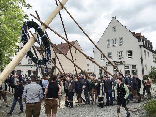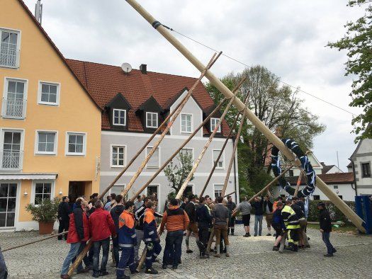 Jede Menge Zuschauer und gut 60 starke Männer haben am 1. Mai mitgeholfen, das Traditionsstangerl wieder im Markt Reichertshofen aufzustellen. Geschlagen wurde die Fichte im Geisenfelder Forst, auf dem Unternehmensgelände der Firma Wallner gelagert und dort auch zum Fest hergerichtet.