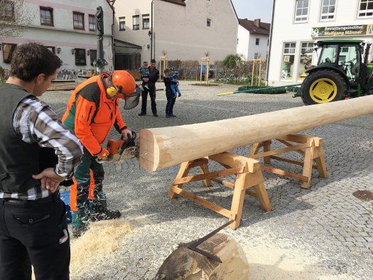 Der stattliche Baum, heuer hat er eine Gesamtlänge von 26 Meter, wurde traditionell aufgestellt von der Maibaum- Gemeinschaft Reichertshofen unter der Leitung von Capo Franz Thaller und Anschaffer Bernhard Gruber.