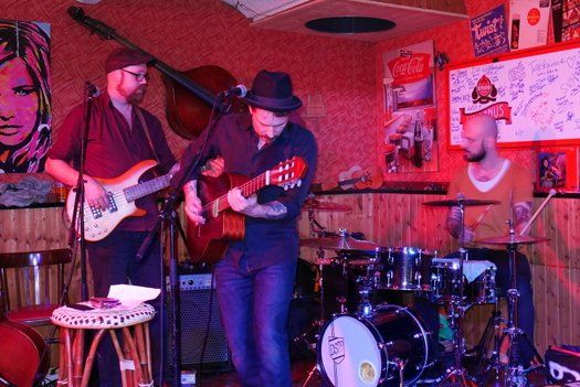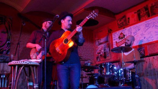 Wir sind Phil Vetter, so die Begrüßung im Soundkeller. Jürgen Reuter (Bass und Cello) sowie Dominik Scholz am Schlagzeug, werden als alte Freunde und Weggefährten, den begnadeten Gitarristen und Sänger, Phil Vetter musikalisch in Szene setzen.