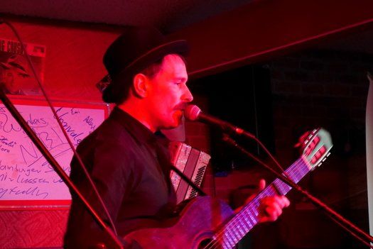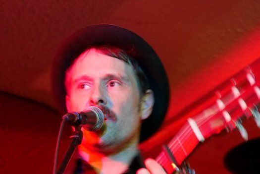 Seine Promo Tour für das sechstes Studioalbum „Das Blaue vom Himmel“, der Soundtrack für den Roadtrip des Müßiggangs, widersprüchlich homogen, irre klar und wirr geordnet, wie er es selbst beschreibt, hat ihn in den Soundkeller geführt. Beim Stilwirt in Wolnzach ist er gern gesehener Gast, kennt also sein Oberbayern und bringt das anfangs recht unruhige Publikum, dann doch zum Zuhören. Hinhören ist besser, denn die Texte haben es in sich, scheinbar nebenbei lässt er Traumwelten zwischen den Gitarrenklängen auftauchen und verschwinden, hinterher sind alle schlauer, man weiß es nicht.