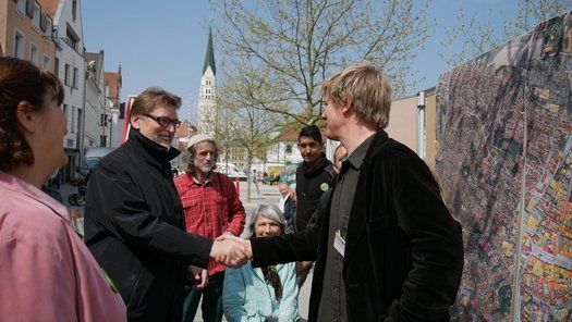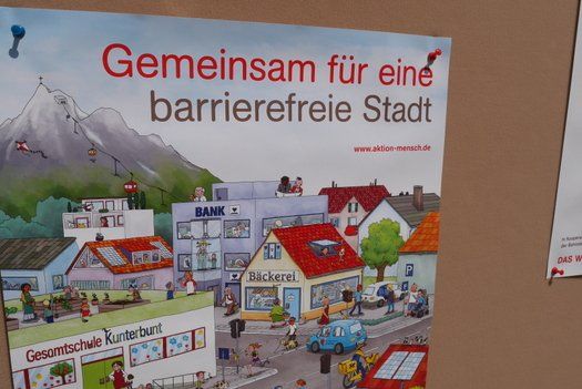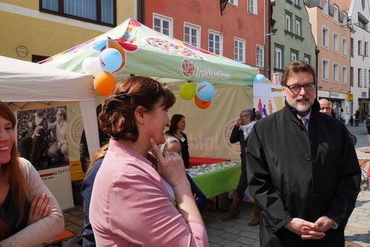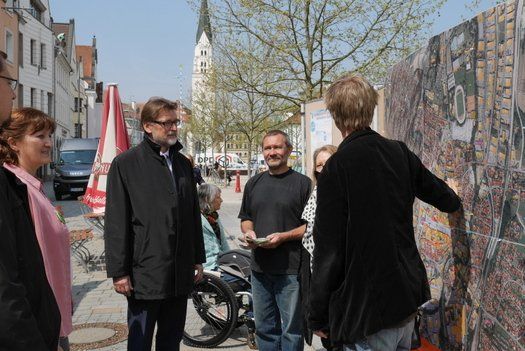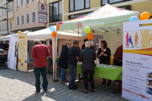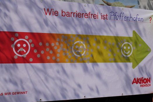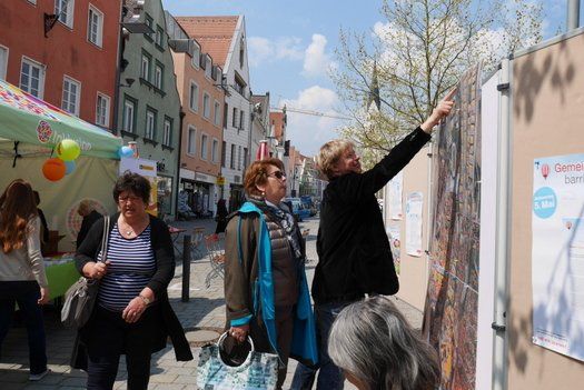 Unter dem Thema "Wie barrierefrei ist meine Stadt", baute der Arbeitskreis Inklusion Pfaffenhofen einen Stand am Hauptplatz in Pfaffenhofen auf. Dabei durften die Besucher auf einem Plakat die Barrierefreiheit ihrer Stadt einschätzen und öffentliche Gebäude in Pfaffenhofen bewerten.