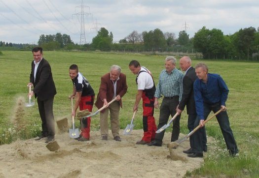Der offizielle erste Spatenstich zum Bau einer Recyclinghalle mit Altfahrzeug- und Maschinendemontage der Fa. Koch Recycling GmbH fand heute Vormittag statt. Ein bedeutender Tag nicht nur für Bauherrn Adolf Koch sen. und seine beiden Söhne, sondern auch für die Gemeinde, denn hiermit entsteht das erste Industriegebiet im Markt.