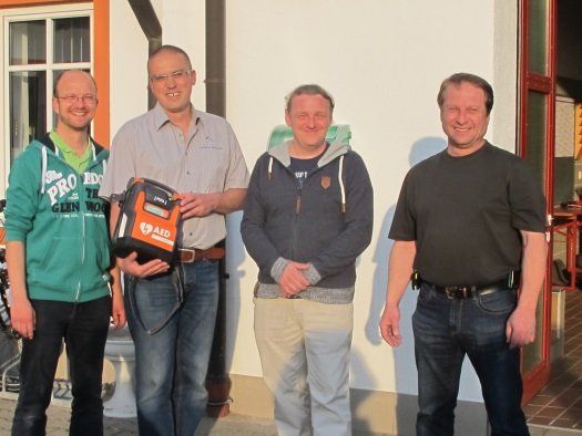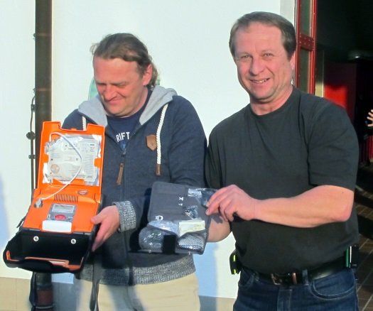 Gerhad Betz und Michael Wagensonner freuen sich über den neuen Defibrillator