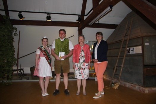 v.l.n.r.: Sabine Schalk (Hallertauer Bierkönigin), Matthias Bendl (3. Bürgermeister), Renate Buchberger (Museumsleiterin), Christin Grundmann (Museum Mainburg)