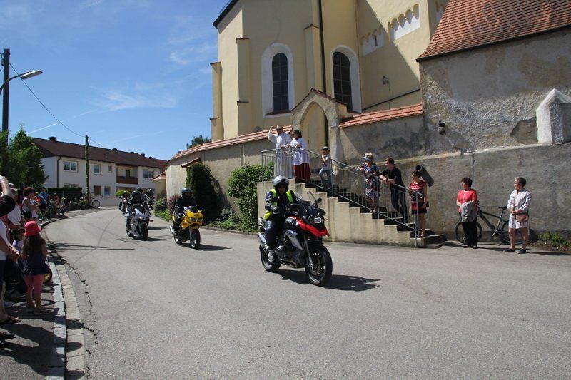 Bei diesen Worten ließ es aber Pfarrer Przemyslaw Nowak nicht bewenden, er ließ sich von einem Biker auf eine Runde durch Gosseltshausen mitnehmen. Um es mit den Worten der Motorradfreunde zu sagen: „Was kann es an so einem Tag Schöneres geben?“