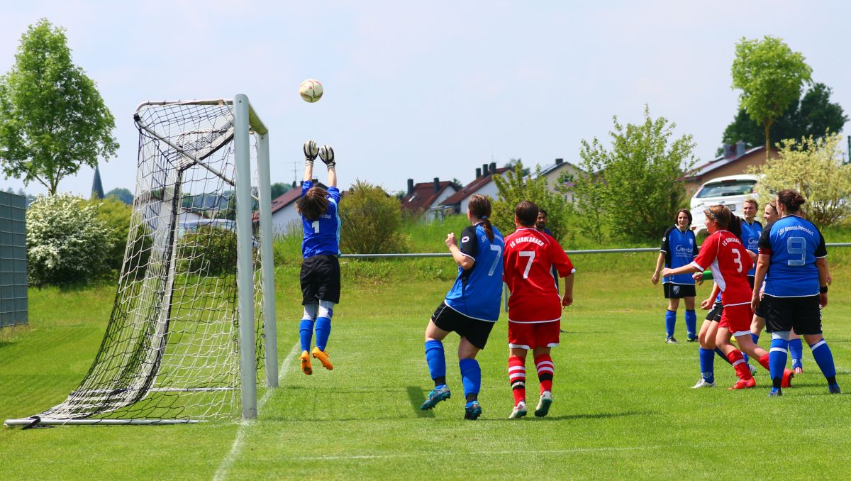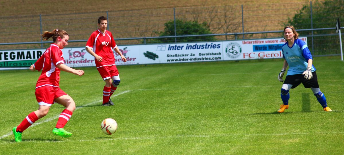 Die Vorzeichen hatten sich schon vor dem Spiel der FC Gerolsbach-Fußballdamen am Fronleichnamstag zu Gunsten der Mannschaft geändert: durch den Aufstiegs-Verzicht des augenblicklichen Tabellenführers DJK Sandizell-Grimolzhausen würden 6 Punkte aus 4 noch ausstehenden Spielen reichen, um als Vizemeister seinerseits den Aufstieg perfekt zmachen zu können. Die erste Hälfte wurde dabei durch einen nie gefährdeten 5:1 (3:0) Sieg gegen SSV Alsmoos-Petersdorf schon auf das Punktekonto eingefahren.