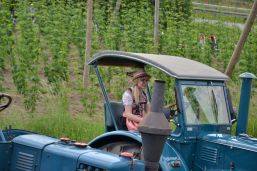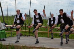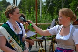 Trachtengruppen traten auf und tanzten auf der kleinen Bühne wie die Ilmtaler aus Pfaffenhofen oder die Schuhplattler der Jungbauernschaft Altenerding. Viele Gäste waren auch selbst in Tracht erschienen und belebte so das bunte Bild. Auch Hopfenkönigin Anna Rossmeier aus Pfaffenhofen-Bachappen war wieder vor Ort und stellte sich den Fragen der Journalistin Regina Wallner. Und ein weiterer Neugieriger war natürlich "Studiotechniker Josef Nullinger" von Antenne Bayern mit seinem ausgestopften Bauch, der nur zu gern wissen wollte, ob er denn auch Hopfenkönigin werden könne und ob Anna Roßmeier mit ihrem Zepter auch zaubern könne. "Nulliger" (bürgerlich: Mike Hager) war den ganzen Tag auf dem gesamten Gelände präsent und stellte sich auch sehr gerne für Selfies zur Verfügung und ließ auch immer wieder einen saftigen Spruch vom Stapel.