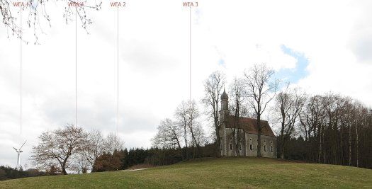 WEA 3 (Ganz rechts im Bild) soll nun wegfallen Fotomontage: BEG Pfaffenhofen