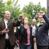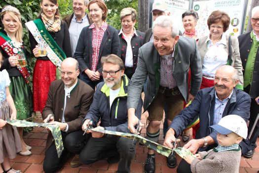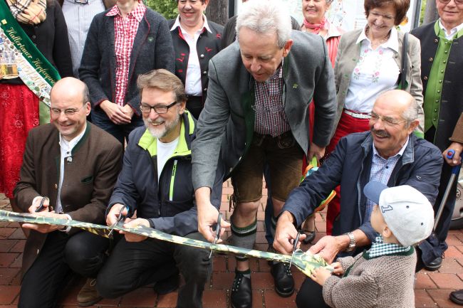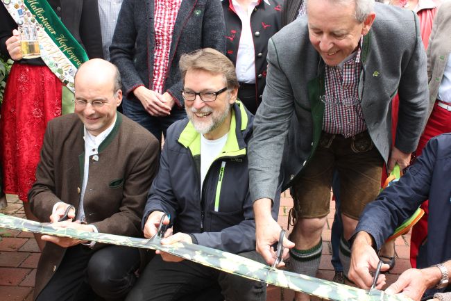 Beim dem feierlichen Bänderdurchschneiden (von l.n.r.: Dr. Lothar Ebbertz, Landrat Martin Wolf, Otmar Weingarten, Landshuts stellv. Landrat Alfons Satzl)
