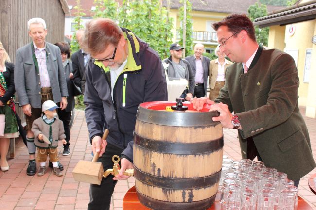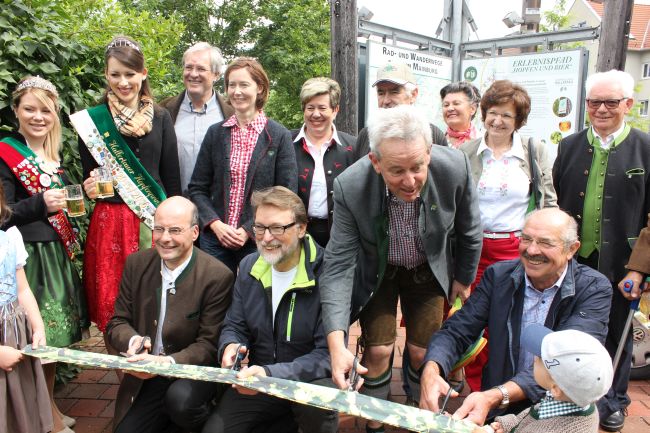 Der Erlebnispfad „Hopfen und Bier“ zwischen Mainburg und Ratzenhofen wurde modernisiert und bekam 17 neu gestaltete Informationstafeln sowie zwei neue Wegweisertafeln. Das war am Wochenende anlässlich des großen Familienerlebnistages Grund genug, die Sektkorken knallen zu lassen oder besser gesagt ein frisches Fass Bier anzuzapfen – und zwar vom Landrat Martin Wolf höchstpersönlich.